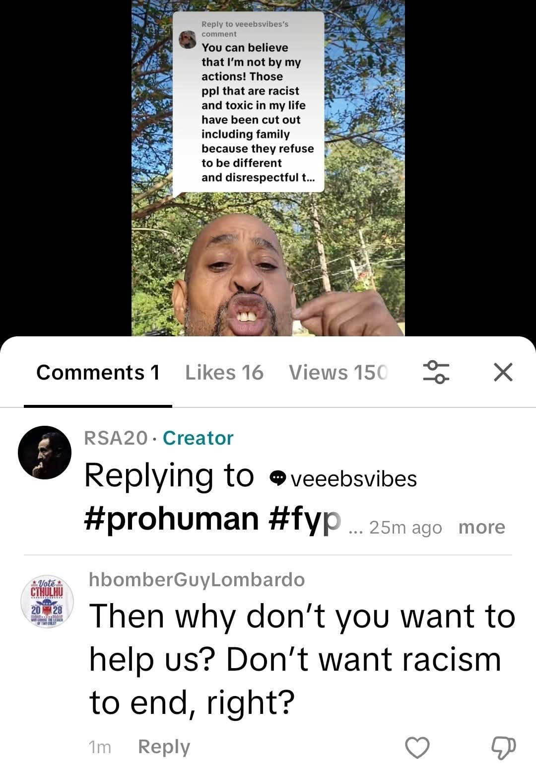 1) The commenter identifies as a part of a marginalized identity within European America. The commenter is so terrified of reprisal from other European Americans that they remain anonymous on a video based app to protect themselves.